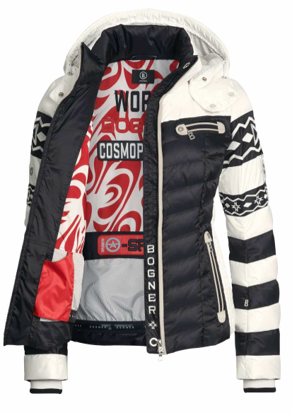 - Down ski jacket with color-blocks & Mexican-inspired embroidery